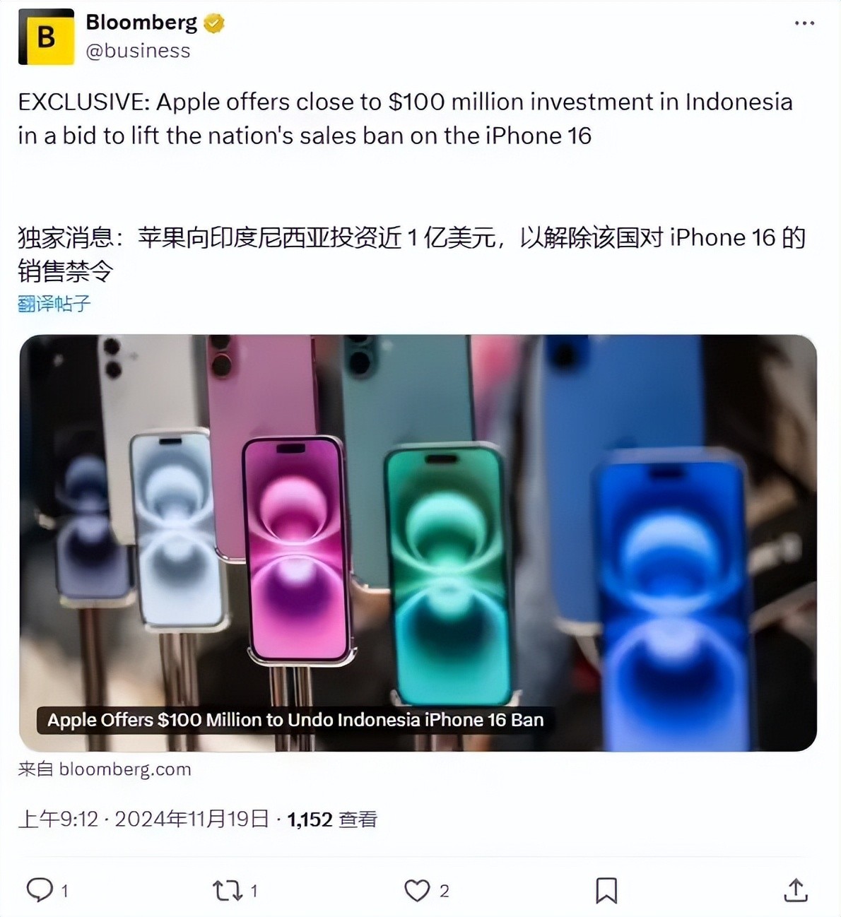 不过,最近该计划又有了新变动。据彭博社的最新报道,苹果提议两年内在印尼投资近1亿美元,试图以此说服印尼政府改变决定。