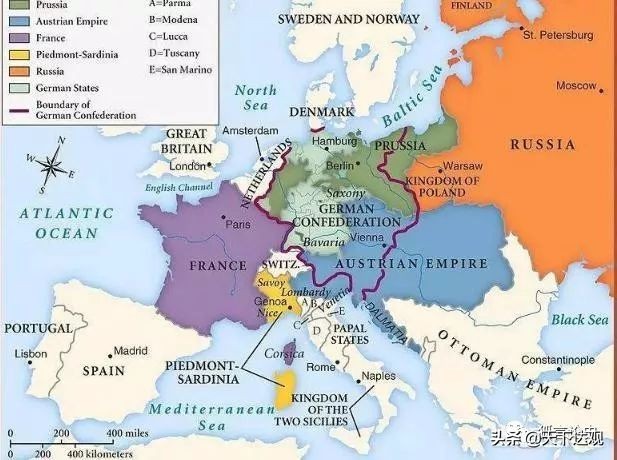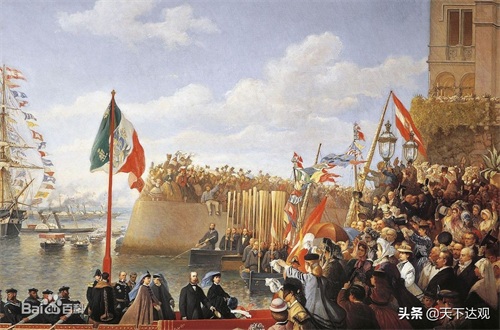 1866年在普奥战争中战败,奥地利帝国被迫解散德意志邦联,同时,被迫将威尼斯归还给普鲁士的同盟意大利。