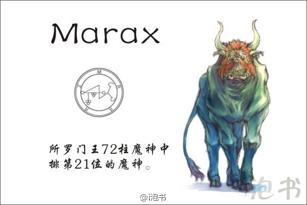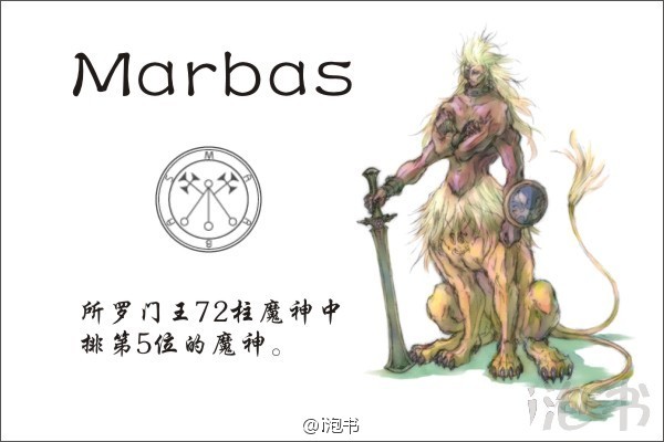 所罗门王72柱魔神中排第5位的魔神,马尔巴斯的特殊能力是发现真实。无论是隐藏的宝物还是隐秘的事情在他面前都无所遁形。同时他还通晓治愈之术和机械技术同时还有赋予召唤者变身的能力。