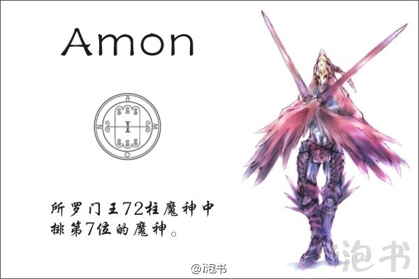也有说法,阿蒙代表的意思是[隐士,不可解者],所以他真正的形象可能从来没人看到过。阿蒙拥有的能力是通晓过去未来,以及使朋友反目成仇或和解的能力。