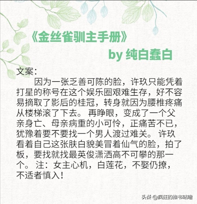 ❤️:超级喜欢这本,娱乐圈背景,女主虽然很有心机,但是不讨厌哦。