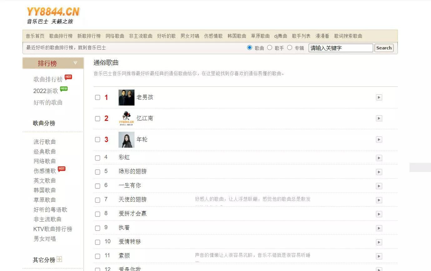 一个完全免费的音乐搜索引擎网站,它的歌曲资源不仅丰富,还支持免费下载。