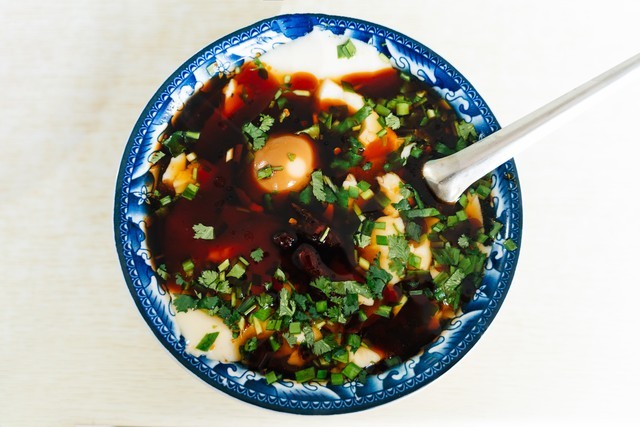 2. 豆腐脑:豆腐脑是山东省传统的早餐小吃,尤其在济南地区非常受欢迎。它以新鲜的黄豆为原料,经过浸泡、研磨、过滤等工序制成豆浆,再用石膏水凝结成豆腐脑。一碗细腻滑嫩的豆腐脑配上香菜、辣椒油和花生酱等配料,味道鲜美。豆腐脑的制作工艺源于古代的豆腐之乡――济南章丘,至今已有数百年的历史。