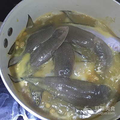 3、然后将洗净舌鳎放入锅中煮开后转小火慢焖5分钟即可