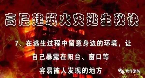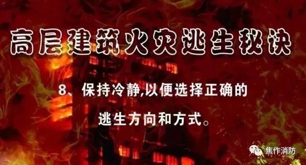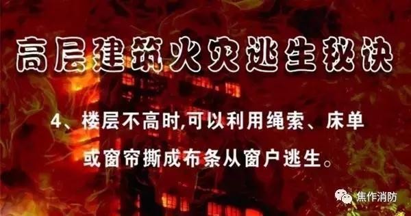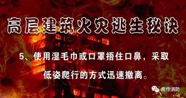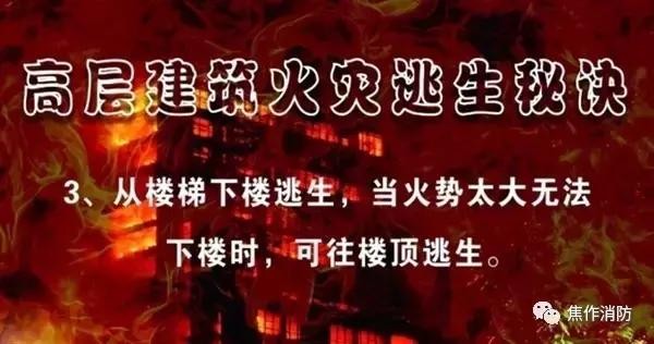 因此,我们要熟悉身边高层建筑的疏散逃生路线,掌握必要的消防安全常识,同时,做好火灾的预防工作!