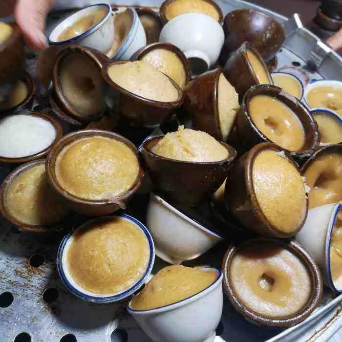 杯子糕也叫肚脐糕,是湖南新化的一种特色小吃,形状如一个个小元宝,吃着软糯香甜可口。