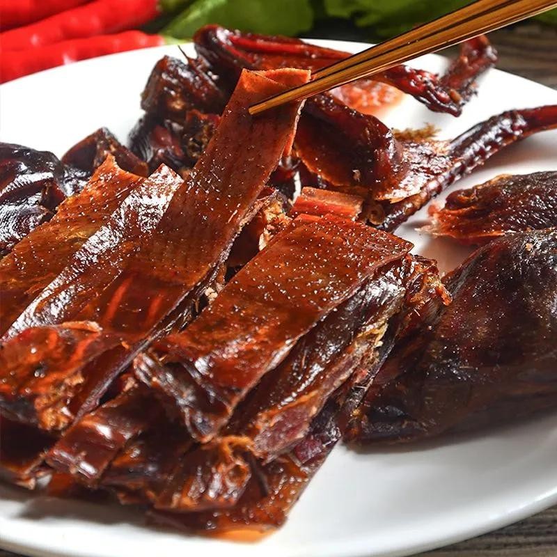 北京有烤鸭,南京有板鸭,湖南有酱板鸭。湖南的酱板鸭香、辣!成品可以直接食用,可以蒸,炒,煮,反正怎么食用都有一股浓烈的酱香味以及辣味,吃不了辣的建议不要尝试。
