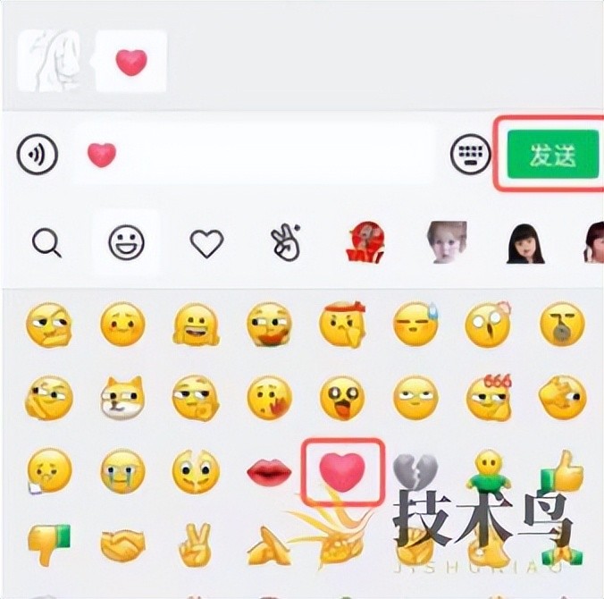 3、点击右下角的【表情】,选择发送表情【爱心】给好友;