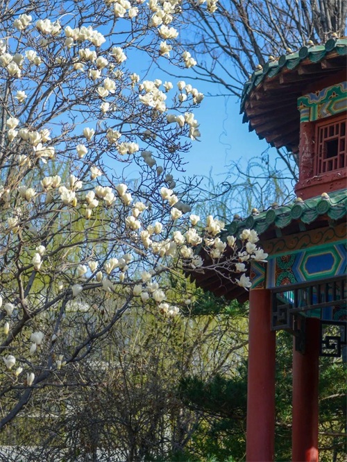 公园北环路两侧和西北角的玉兰花绝对是当之无愧的春日顶流。这里有着市区里最大规模的玉兰花群等您欣赏。