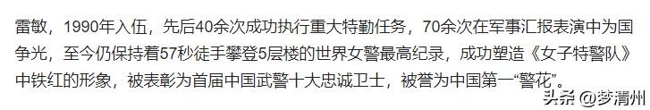 那么雷敏究竟为什么要加入特警队伍,现在她又如何了呢?