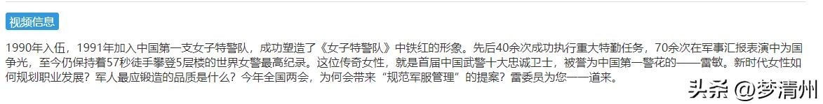 中国军网2020年05月28日——雷敏——霸王花的别样绽放|行进看点全国两会人物特刊