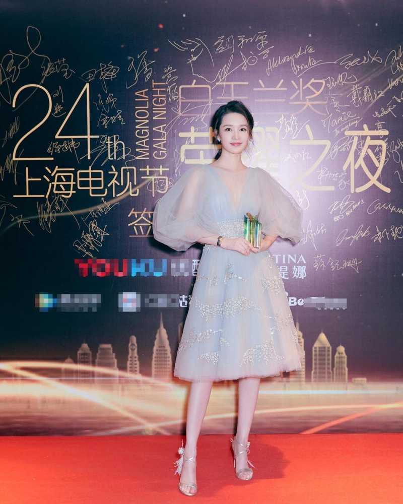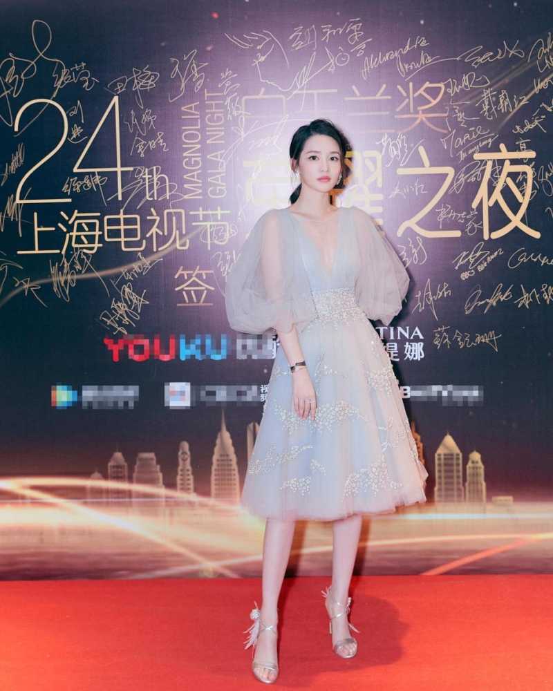 日常的穿搭中,灯笼袖也是非常可爱遮肉的。但为了避免臃肿,李沁的这件白纱裙在灯笼袖的设计上选择了单层面料,特别的轻盈妩媚,透着神秘的气息。