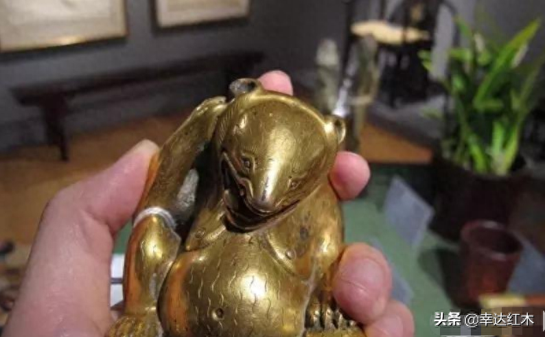憨态可掬的西汉时期,鎏金铜熊摆件,