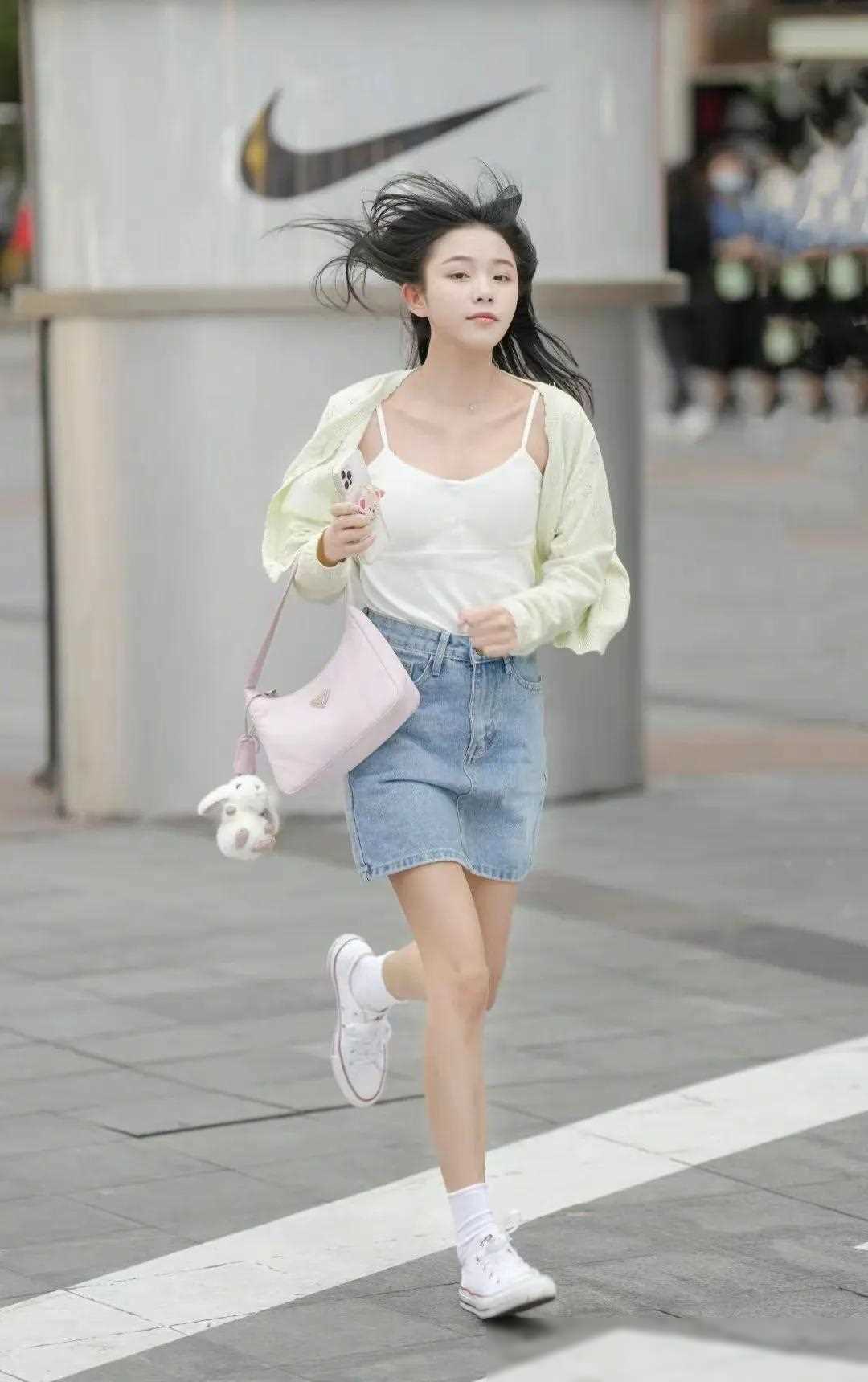 时尚博主小A:她选择了一条高腰牛仔短裤搭配一件简约的白色T恤和一双白色运动鞋。整体造型简约时尚,充满了青春活力。