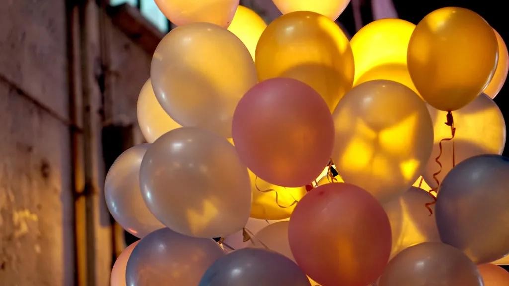 但是大暴雨,放飞的气球还没到太空,就被冷空气拦了下来,导致气球没有办法飞起来,给狂欢的人们来了一场气球雨,天空都变成了彩色。