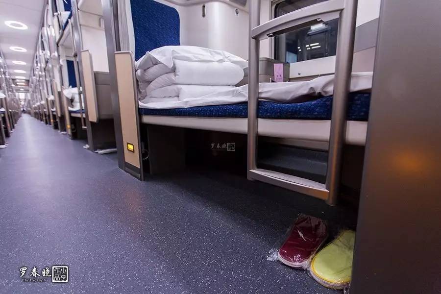 下铺下层空间用于放置大件行李,还为旅客配有拖鞋。