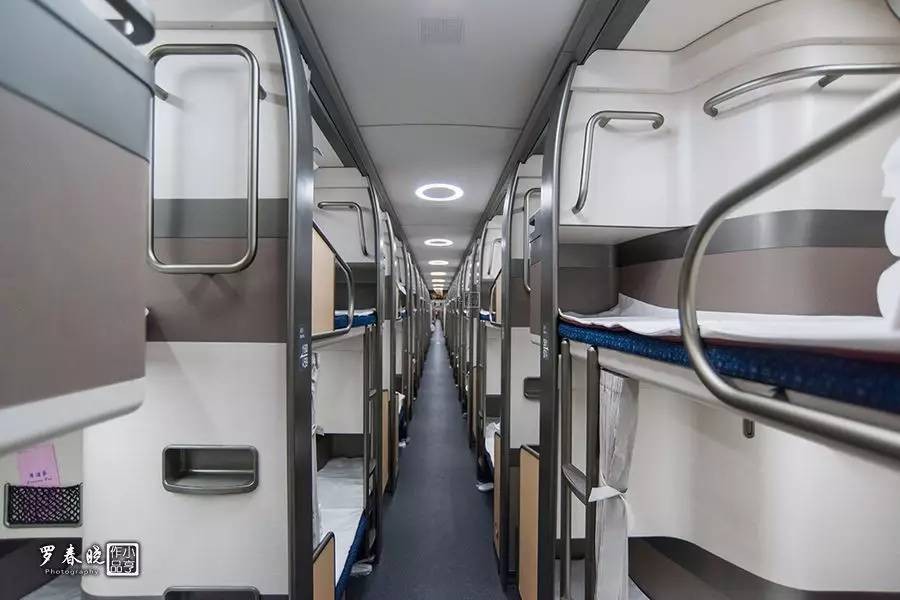 车厢内以前横向休息的卧铺,全部变成了纵向布局,走廊在中间,两边是卧铺,左右交错。