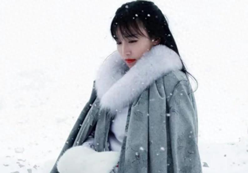 比如其中一个在雪中拍摄的乡村视频,因为是冬天拍的视频,到处都是一片银装素裹的洁白大地,而李子柒身穿一件浅蓝色的披风袍子,站在雪地里,这一幕画面如同出塞的昭君,可以惊艳无数人。