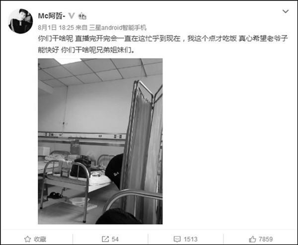 就在9月份,阿哲请假很多天,四处求药,最终千辛万苦求得药!从早上出门,到下午才回家,一路上阿哲都没有吃饭!大家好记得么,阿哲当时直播的时候狼吞虎咽的吃着饭为大家讲述这一路取药的困难!阿哲为了父亲尽了全力四处求医取药!就在昨天下午,老爷子还是离开了,节哀阿哲,你是他的骄傲,还有阿姨需要你照顾呢!