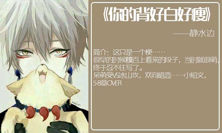 短评:萌文小短篇,由一个个有爱小片段构成,之间又承续了情节发展,构成了一个完整故事。人如其名,小受叫戴蒙,呆萌呆萌的,反应迟钝很傻很天真,小攻叫兵杉,帅哥都是面瘫冰山,但人家很闷骚,比如说会在对面宿舍楼默默地视奸小受的背(没穿衣服的),无耻的发短信要求小受脱衣服把背给他看,淡定的在上课时摸小受的背,这一切都是缘于爱啊,其实各自暗恋着对方,美好的一塌糊涂,最后小受终于知道了神秘的“古老肉的搓背师傅”就是他一直暗恋小攻,这故事就HE了。