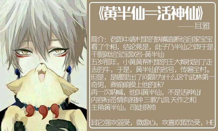 短评:聪颖呆萌受,受很聪明,料事如神;攻是山寨头子,开始只是想通过受来找个美女结婚的,慢慢的被受吸引了。攻宠受,温馨。 突然发现要剧透好长好长啊,非常经典的一篇了,完结,he,强推。广播剧已出。
