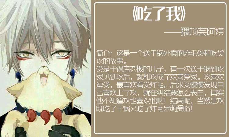 短评:腹黑吃货攻vs炸毛呆萌受,故事内容很不错,很萌,很好看。吃货跟兔子的故事,这只兔子不但炸毛,还别扭、傲娇。短篇小萌文,温馨治愈,完结,he,强推。