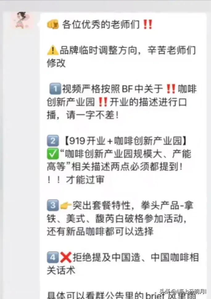 其中第4条明确要求:拒绝提及中国造,中国咖啡等相关话术!