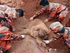 地震袭来,母亲用身体护住了女儿,连筷子都没来得及丢掉。无情的地震夺走了母女俩的生命,但当人们把她们从废墟中刨出来时,她们僵硬的身体依旧紧紧相拥,母亲依旧保护着她的女儿……