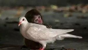 一只与妈妈走失的小猴子,对这个世界既充满了恐惧,又满怀着希望,它深情地拥着白鸽,体验着这个世界;白鸽没有害怕和抗拒,它用接纳回应着这只孤独的小猴子。爱无疆,谁说过爱只存在于人类?