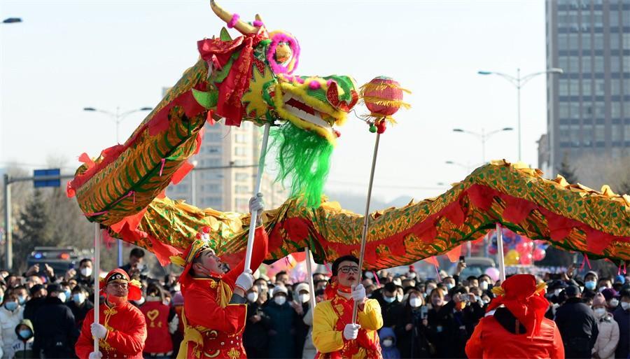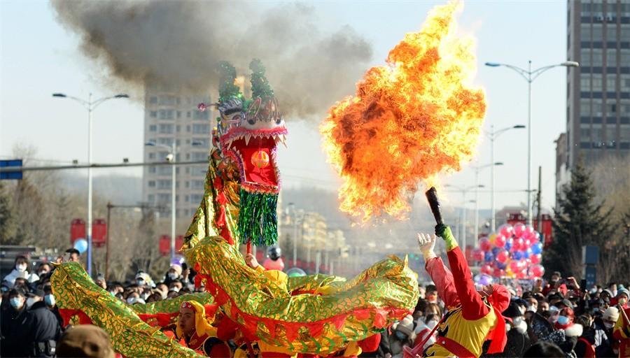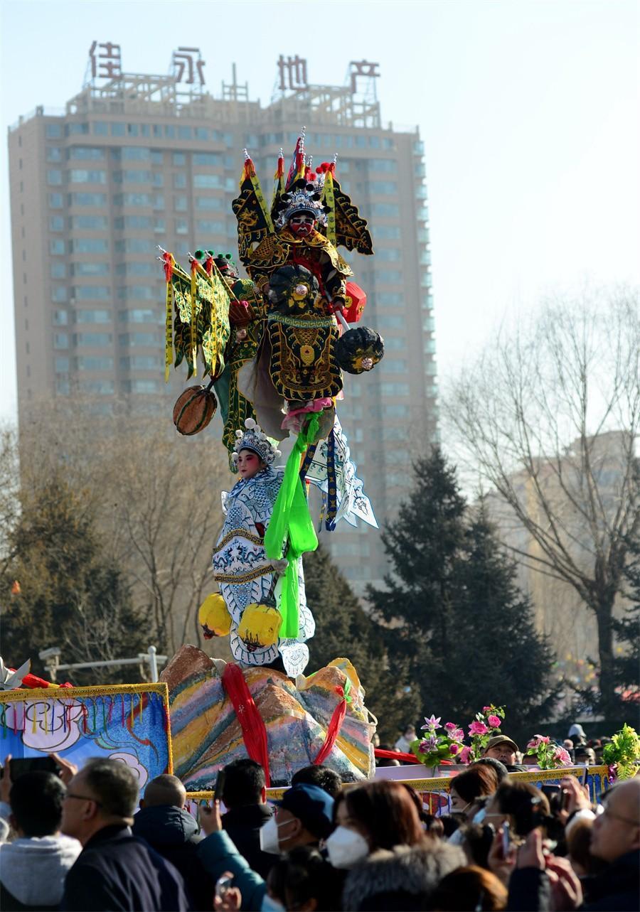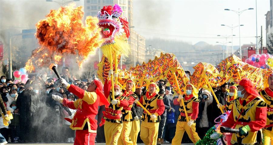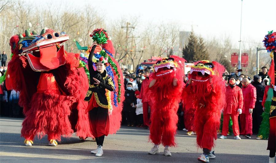 舞龙斗狮、秧歌、太平鼓、腰鼓、走高跷、铁芯子、滚灯、划旱船……2月2日,农历正月十二,甘肃永登县“非遗过大年,文化进万家”系列展演纷纷亮相,13支代表队带来了一场极具地方特色的文化视觉盛宴。