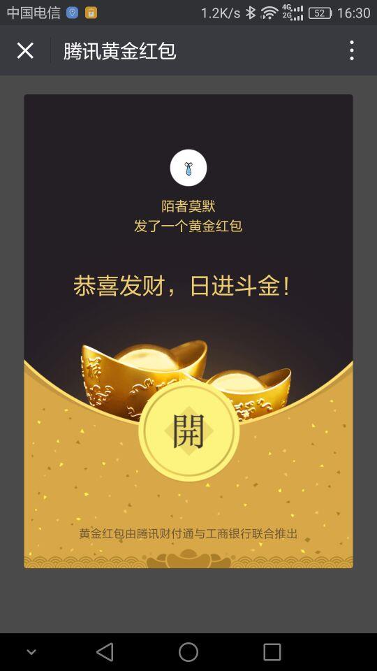 春节期间,微信开启了春节黄金红包的内测活动,只有部分拥有资格的用户才可以发送黄金红包。