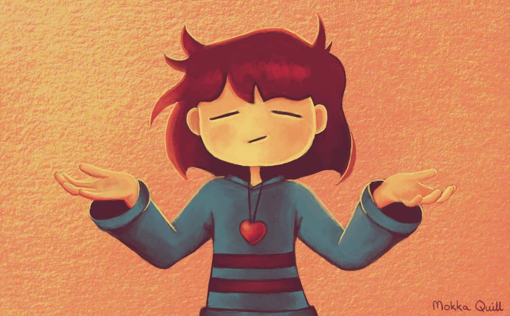 在游戏中,Frisk 总是保持面无表情的样子(被玩家们称为“决心脸”)。
