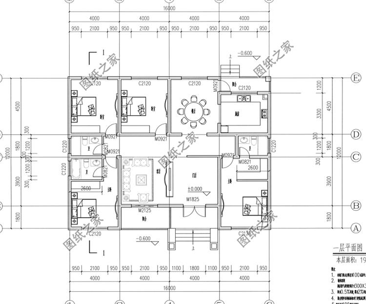 图纸介绍:本户型占地190平米左右,外观造型美观大气,户型布局非常合理,4个卧室满足绝大部分家庭使用。