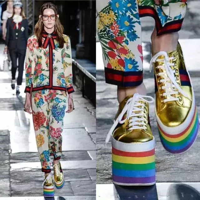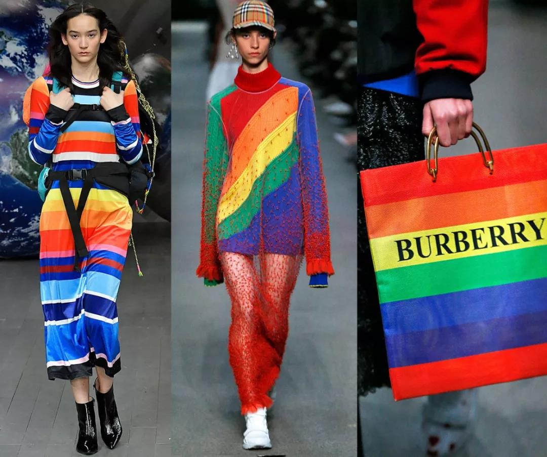 彩虹配色也变成一种新式潮流,不难看到最近释出的很多单品利用彩虹色点缀,颇具震撼力。
