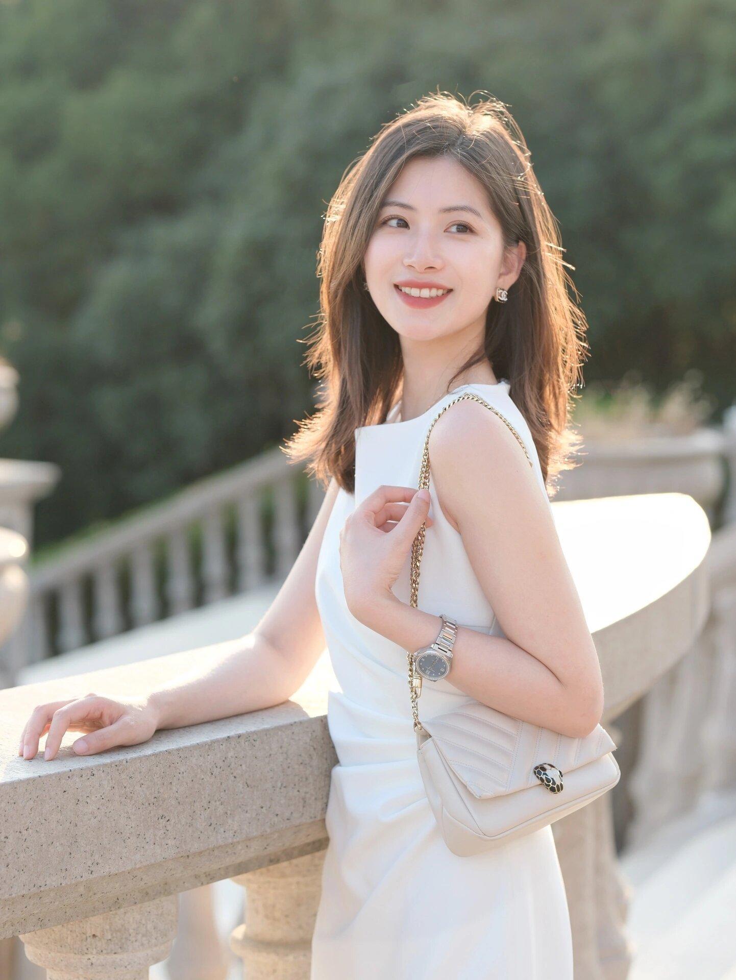 如果不想正面或背影入镜,可以尝试半侧身,手自然放在背后,回头微笑望向一旁,展现自然气质。