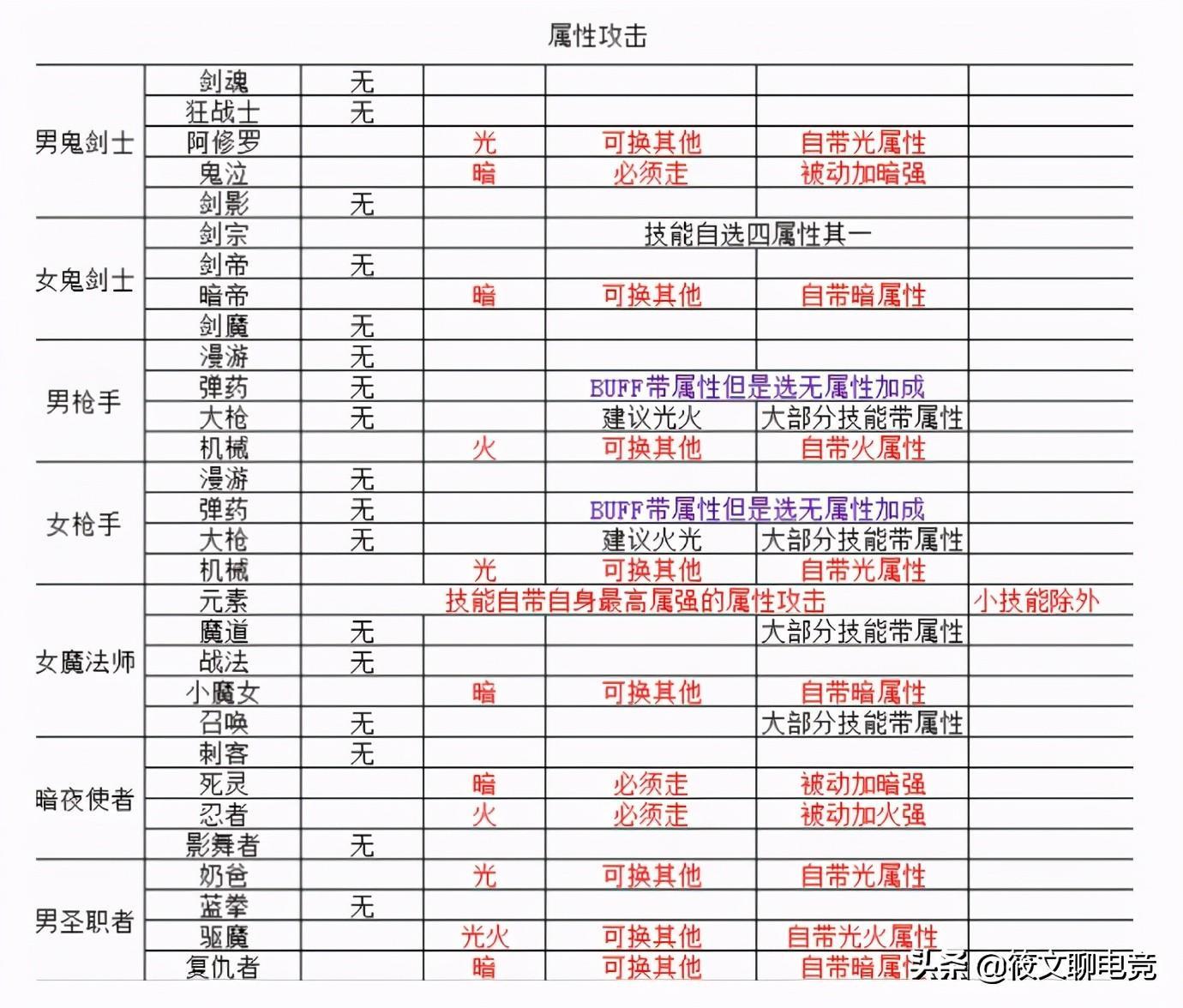 DNF:你该还不会不知道职业属性攻击吗?全职业属性攻击一览