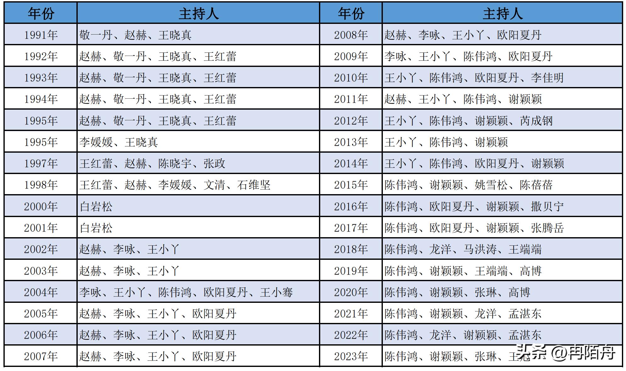 历年央视315晚会主持团队:
