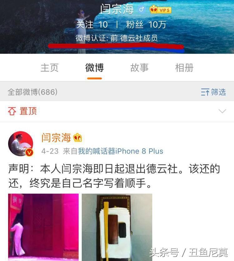 不仅如此,退出德云社以后,闫云达还取关了德云社的所有朋友。目前,闫云达关注的人只有10个,没有一个是和德云社、郭德纲有关系的。看来,闫云达已经下定决心要和郭德纲撇清关系了。不过“前 德云社成员”这个认证,说明闫云达一时半会还离不开德云社这块金字招牌。