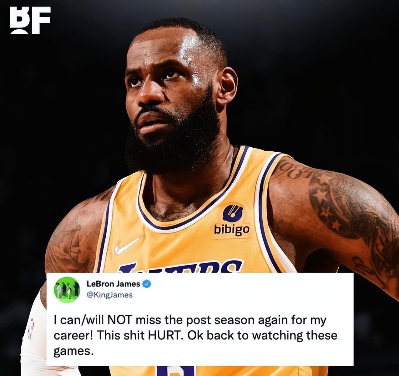 在度假期间,老詹曾发了一条推特:“在我余下的生涯中,我不能、也不会再次错过季后赛了!这感觉真的很心痛,好了,我继续去看比赛了。”