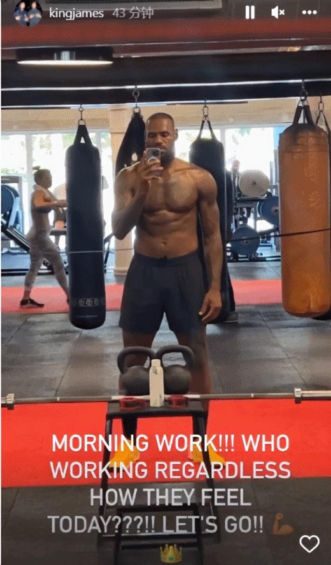 老詹晒出自己训练的视频,这一身腱子肉一点没丢,配文写道:“晨间训练!一个不管今天感觉如何,都要继续工作的人?加油!”