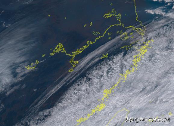 这个时候,也有的朋友注意到了,在台风北冕雨冷空气形成的降水云带的北边,我国长江以南有一道浅薄如丝带的云系笼罩在南方多省上空,但看上去又十分规整,边缘非常光滑,江西等地的朋友注意到了天空中出现了一半是云一般是晴天的“阴阳天”。