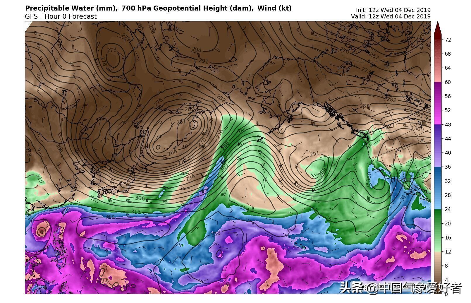 事实上,通过高低空大气层状态的分析来看,这“阴阳云”的确是和冷空气有关——12月4日下午,可能是因为我国西南地区上空南支西风槽的发展,使得水汽得以向着我国西南地区输送,而一小支水汽更是向东输送,并且在我国东部西风带的活动中被急流抬升到高层而冷却,最终在急流的帮助下形成了浅薄的高积云,变成了形状规则但不下雨的“阴阳云”。