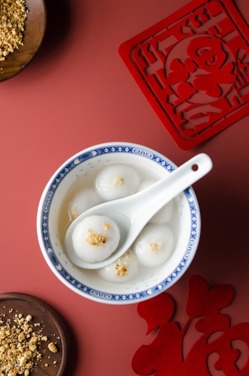 大年初一早上吃汤圆, 预示着团团圆圆、阖家幸福。各种馅的汤圆软糯甜蜜, 外形圆滚滚的, 寓意财源滚滚来,生活和和美美, 财运亨通。