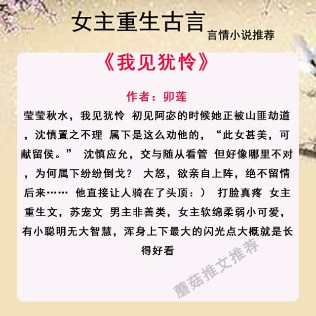 女主重生古言推荐《我见犹怜》男主非善类,女主软绵柔弱小可爱