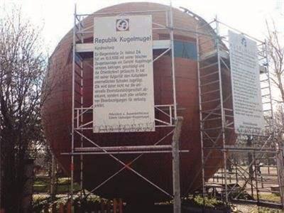 艺术家嘛!希望自己的房屋建造的特别一点,有点艺术气息,所以他决定在奥地利的乡下,盖一个球形的房子,还起了一个名字叫库格穆格尔,意思是山上的小球,结果维也纳市政府,没有批准这个房子的建造,双方还一度发起了争执,艺术家都很固执李普伯格不顾政府的劝阻,就把这个球状的房屋建了起来,为了保护这个房子,他用铁丝把房子围上