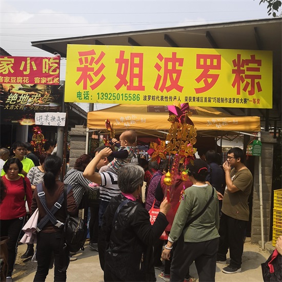 每年农历二月十一日到二月十三是广州民间传统的"菠萝诞"。其中二月十三是"正诞"还会盛大的庆祝仪式。有不少善信从珠三角等地前往南海神庙进香祈福。庙前摆卖的"金菠萝""菠萝鸡""菠萝棕""祈福风车"十分抢手,人们祈求能为自己带来好运。