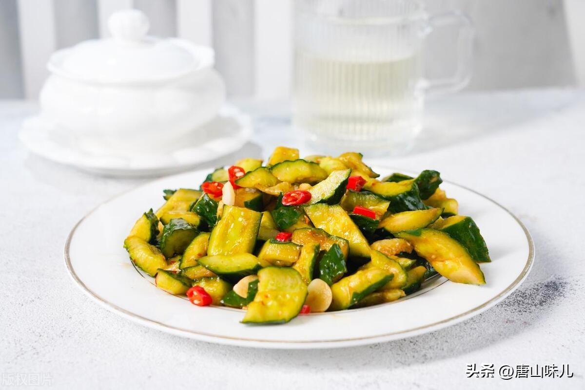 2.凉拌黄瓜:将黄瓜切成薄片,加入蒜泥、醋、盐、糖、花生油、香菜、辣椒油、味精等调料,拌匀即可。这道黄瓜凉拌口感爽脆、清新,是一道家常下饭菜必不可少的一道菜肴。