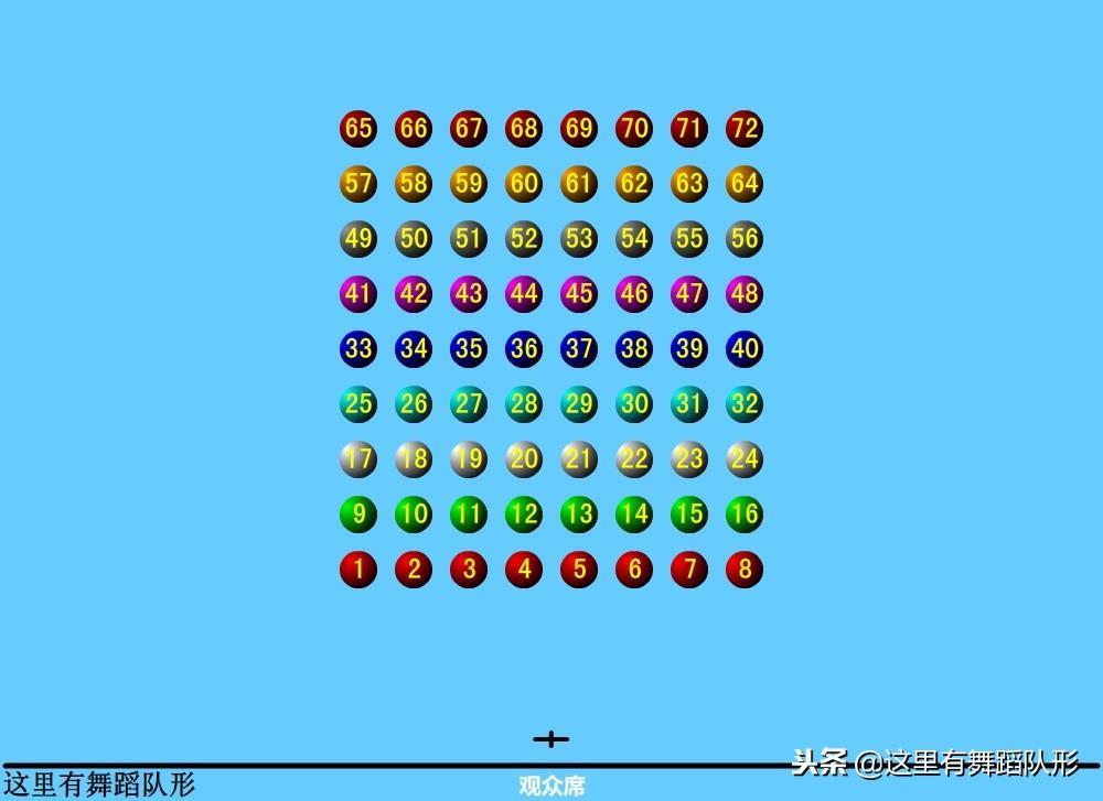 64人也好,72人也罢,其实都是在我之前更新的舞蹈队形基础上变化的,不一定非要按具体人数去找队形,只需要按照自己的人数套到需要的变化上就可以。