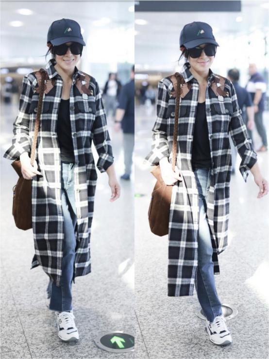 刘若英真不像60后,穿格纹衬衫走机场,接地气打扮也穿出文艺感
