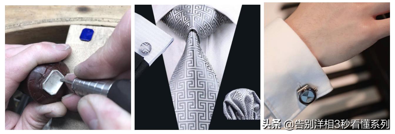 3.选择与身上佩戴领带的颜色相匹配的袖扣。